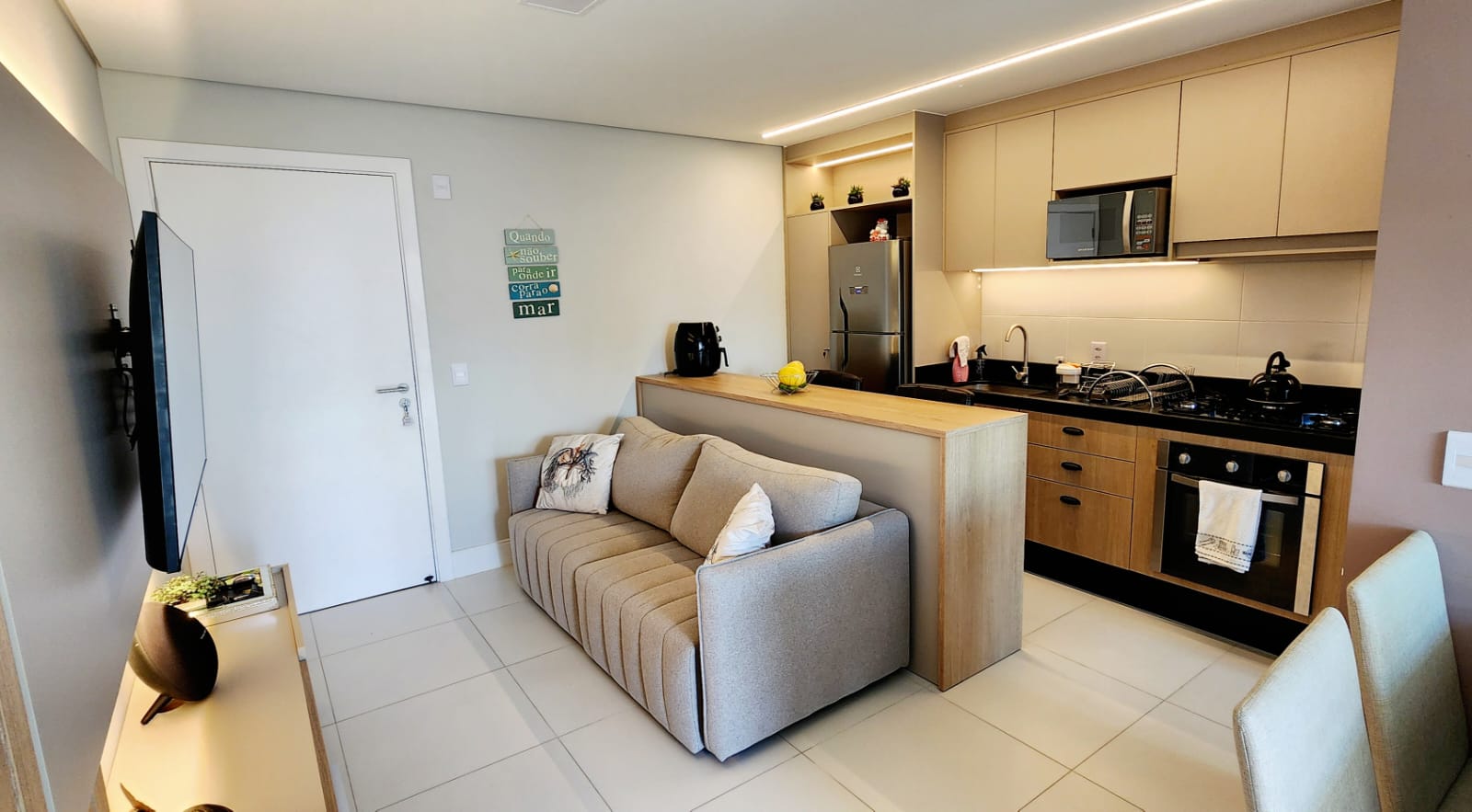 Apartamento super bem mobiliado, com 2 dormitórios, ambos com ar-condicionado, ideal para quem busca conforto, praticidade e qualidade de vida à beira-mar. Os ambientes foram pensados para oferecer bem-estar tanto para moradia quanto para lazer ou investimento.